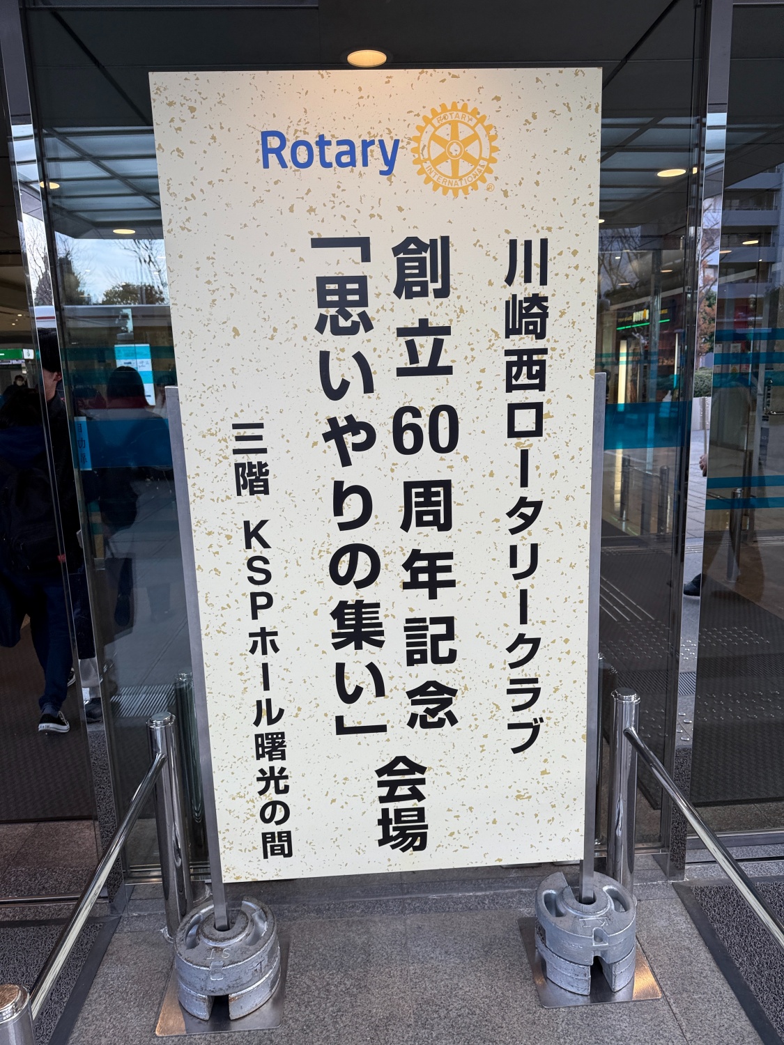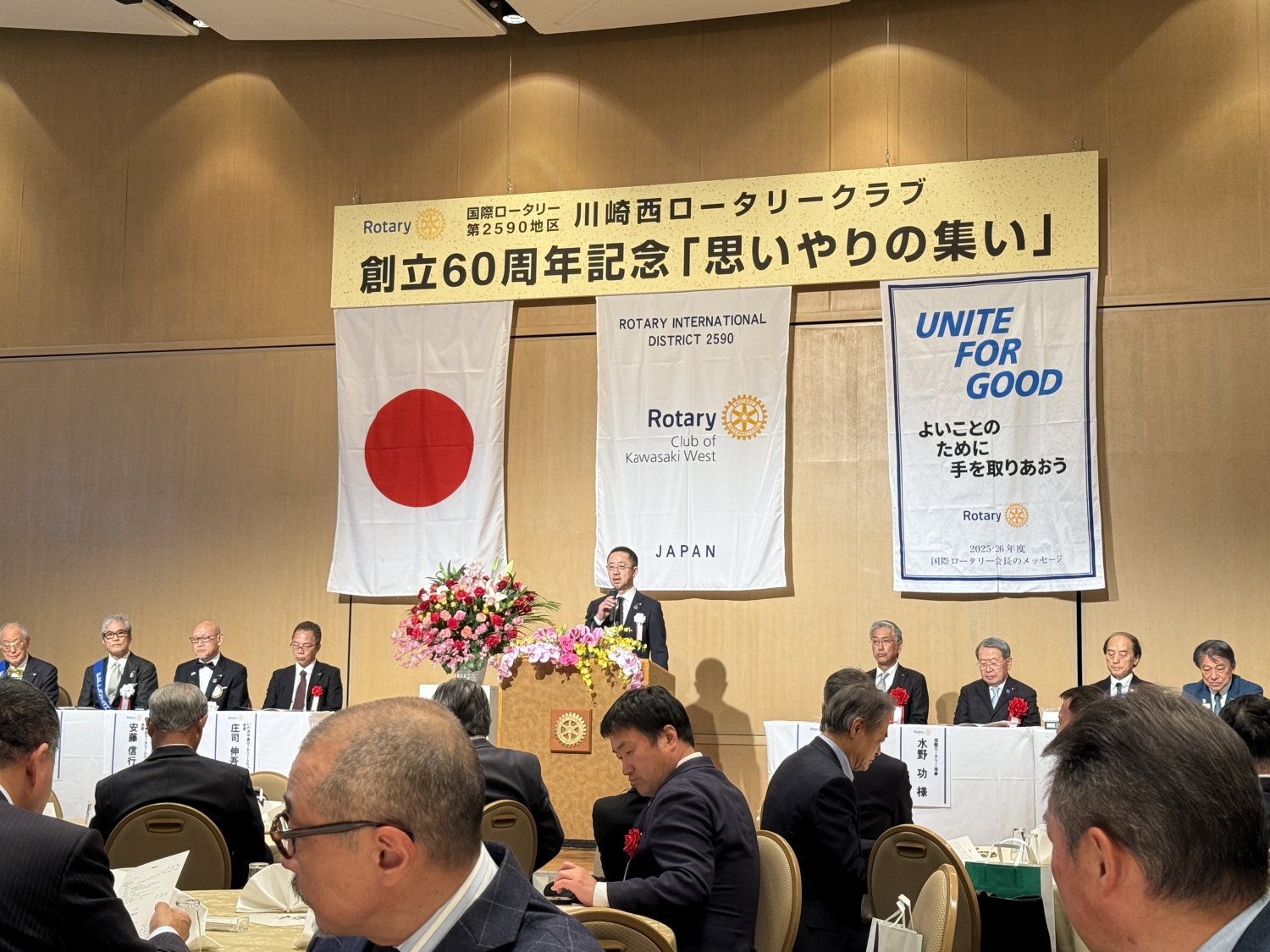 改めまして、川崎西ロータリークラブ創立60周年を心よりお祝い申し上げるとともに、今後のさらなるご発展を祈念いたします。