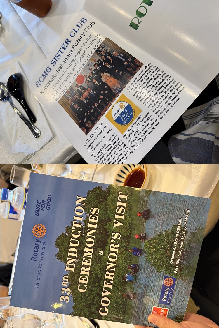 調印式では、井元会長とマカティグリーンベルトRCのジュディス会長が姉妹クラブ提携書に正式に署名。その瞬間、会場からは大きな拍手が沸き起こり、両クラブの友情と未来への期待が高まりました。