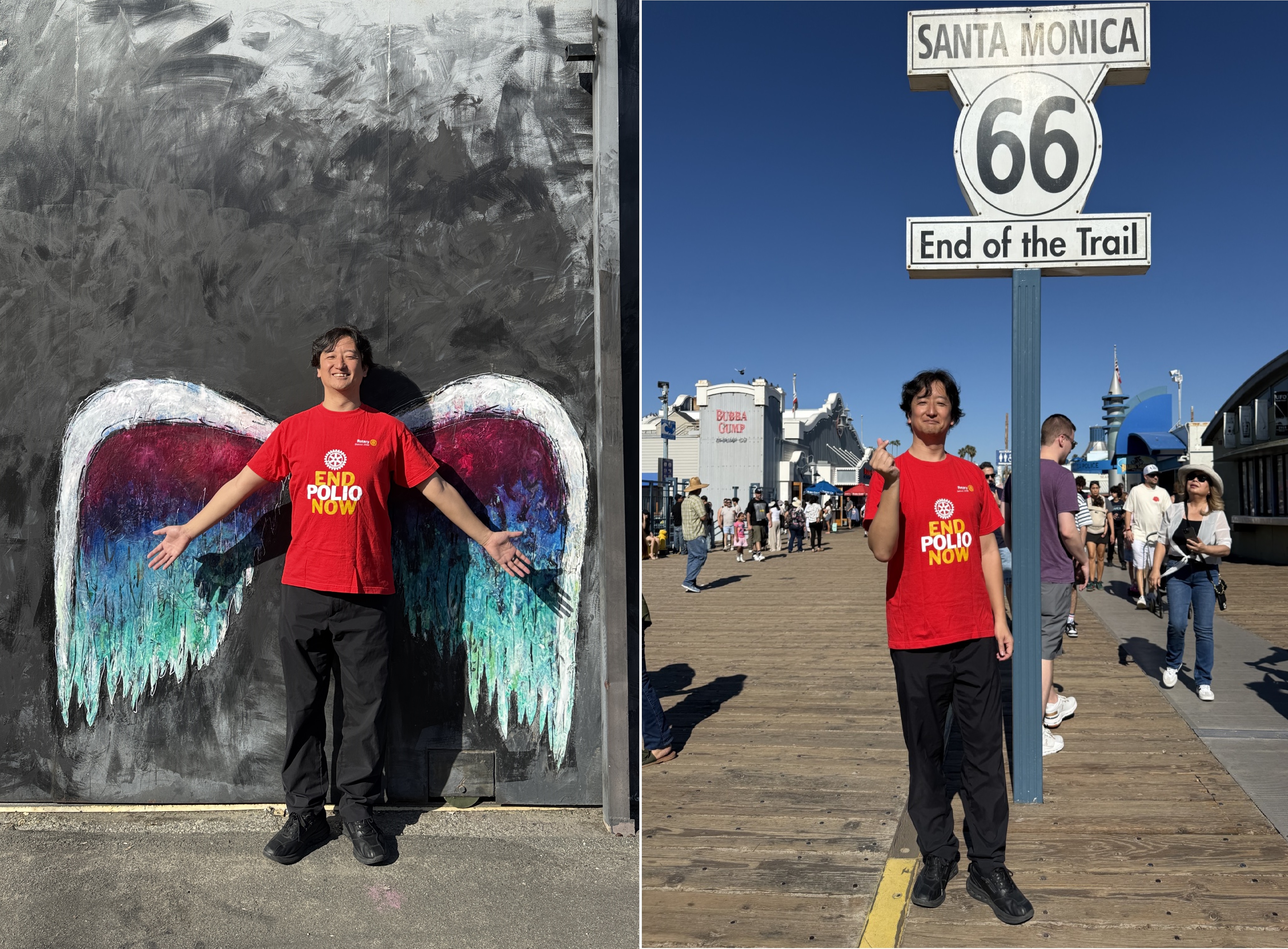 またロサンゼルス滞在中には、ポリオ根絶キャンペーン「End Polio Now」のTシャツを着て、サンタモニカやアートディストリクトなどを訪問し、ポリオ根絶へのメッセージをアピールしてきました。